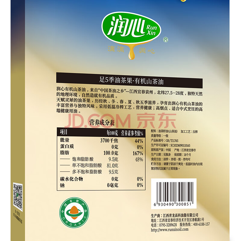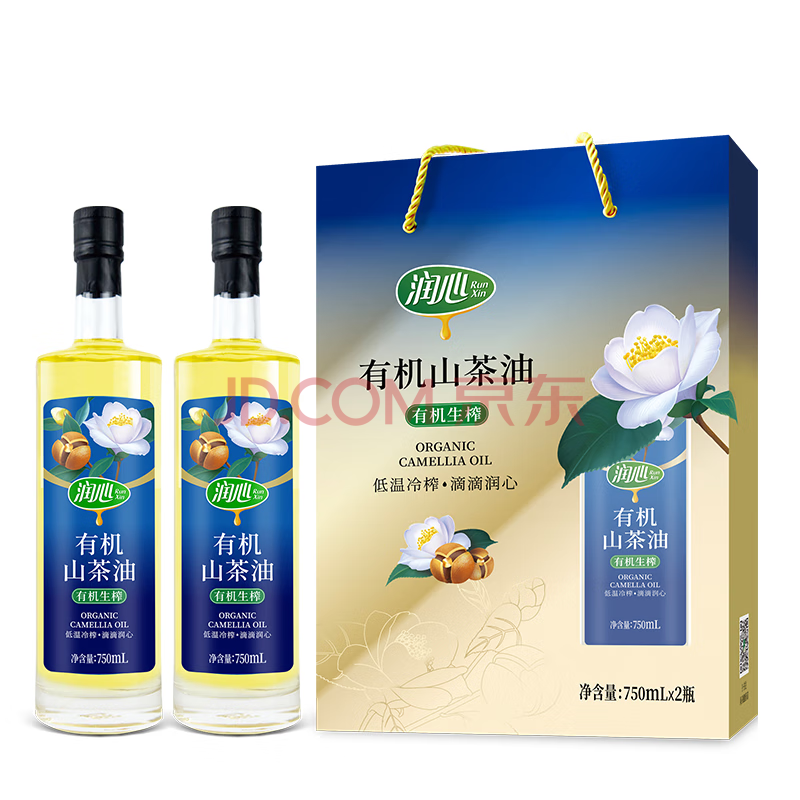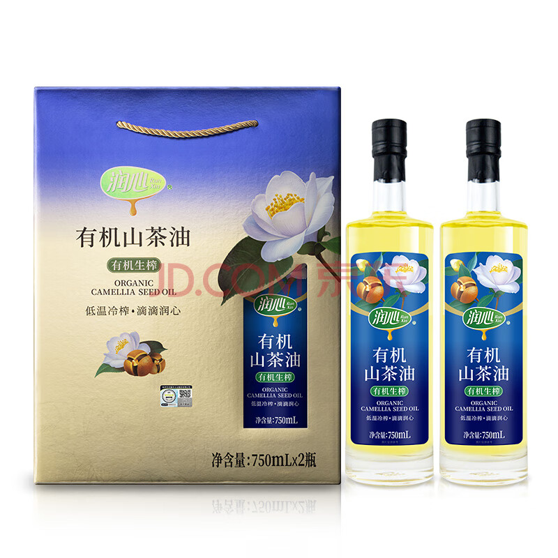 商品名称:润心【保真山茶油】 有机油 低温冷榨一级 食用油生榨 礼盒750ml*2瓶