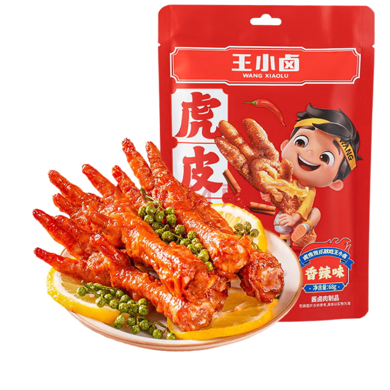 商品名称:王小卤虎皮凤爪卤鸡爪年货卤味休闲解馋零食熟肉鸡肉开袋即食香辣味210g