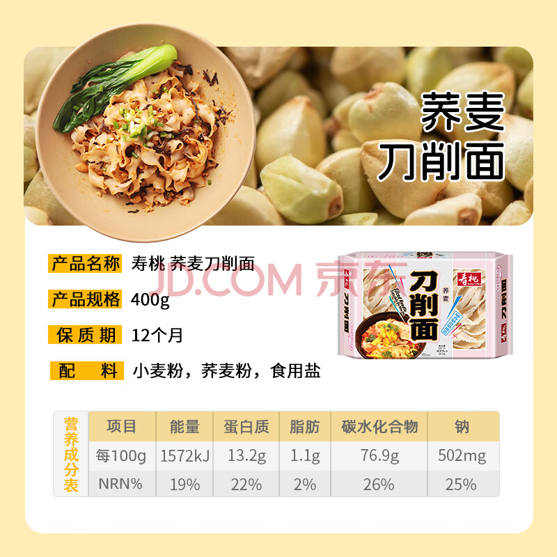 商品名称:寿桃非油炸荞麦刀削面6个装宽面条挂面油泼面烩面低脂方便速食400g/包