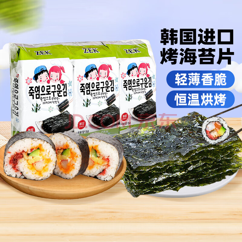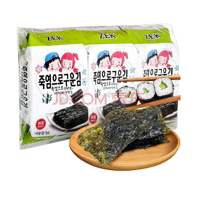 商品名称:Zek韩国进口 竹盐海苔紫菜包饭寿司即食烤海苔 儿童零食 5g*3包