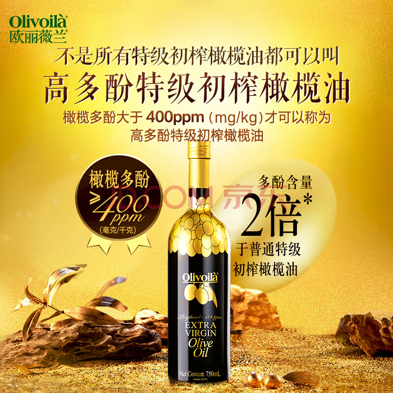 商品名称:欧丽薇兰 Olivoila 保真 食用油高多酚特级初榨橄榄油750ml*2精选年货礼盒