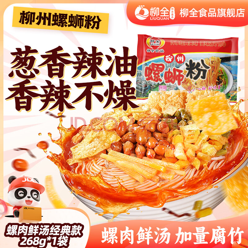 商品名称:柳全 柳州螺蛳粉268g方便速食螺狮粉酸辣米粉丝夜宵美食螺丝粉方便面