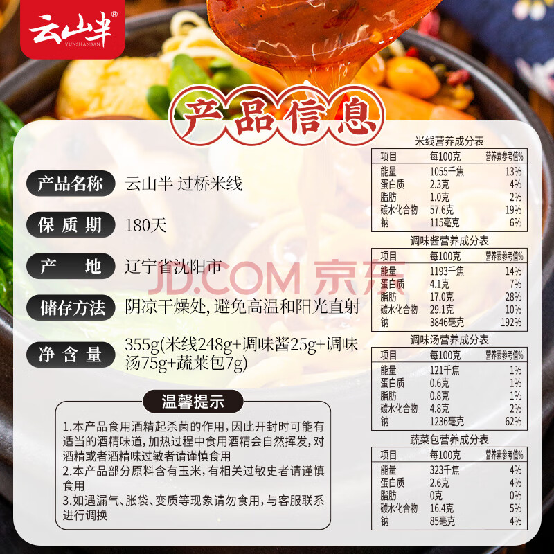 > 云山半云南过桥米线355g含调料包干米线方便速食代餐米粉螺蛳粉零食夜宵