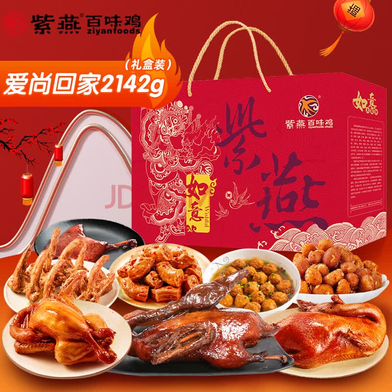 > 紫燕百味鸡高端礼盒熟食卤味肉类零食烤鸭烧鸡送礼长辈预制菜爱尚回家2142g
