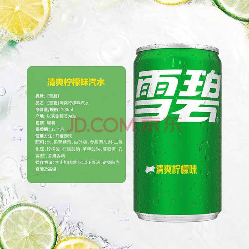 商品名称:可口可乐(Coca-Cola)雪碧 Sprite 柠檬味 迷你碳酸饮料 200ml*12罐 整箱装 年货