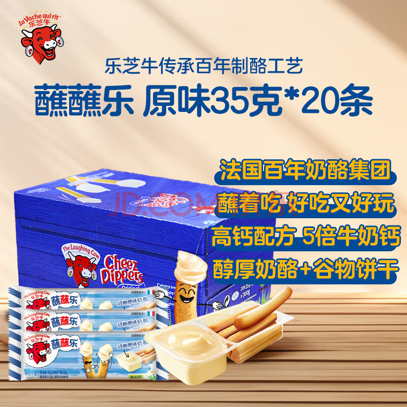 乐芝牛法国蘸蘸乐再制干酪高钙儿童棒棒奶酪饼干棒原味35克*20礼盒装