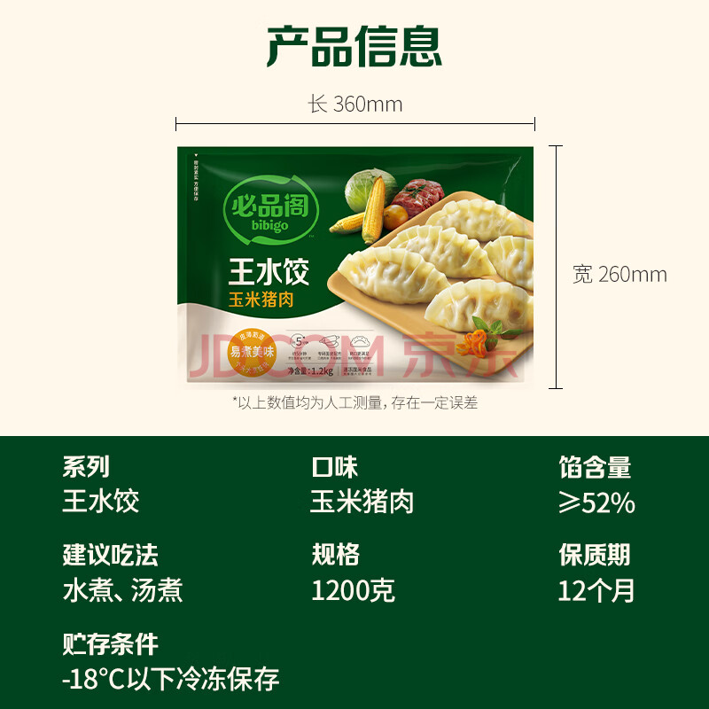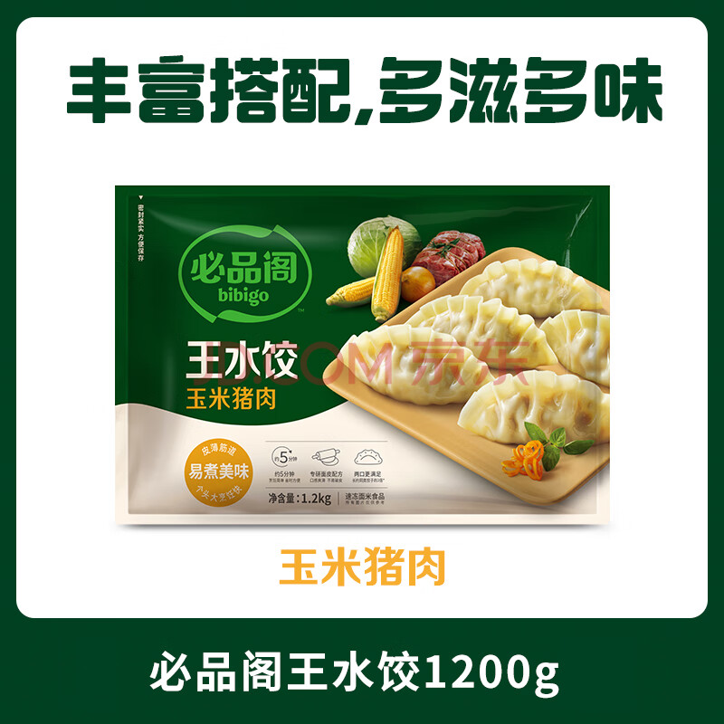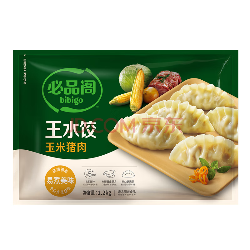 商品名称:必品阁(bibigo)玉米蔬菜猪肉水饺 1200g 约48只 早餐夜宵速冻饺子年货