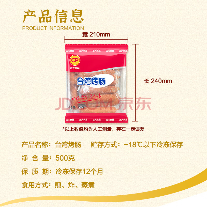 商品名称:正大食品(CP)台湾烤肠1斤 台式香肠鸡肉火腿肠烤肠 便利店烧烤 营养早餐 年货