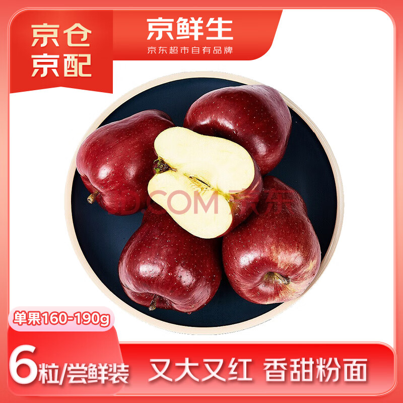 商品名称:京鲜生 甘肃天水花牛苹果 又大又红 6粒尝鲜装 单果160-190g 生鲜水果