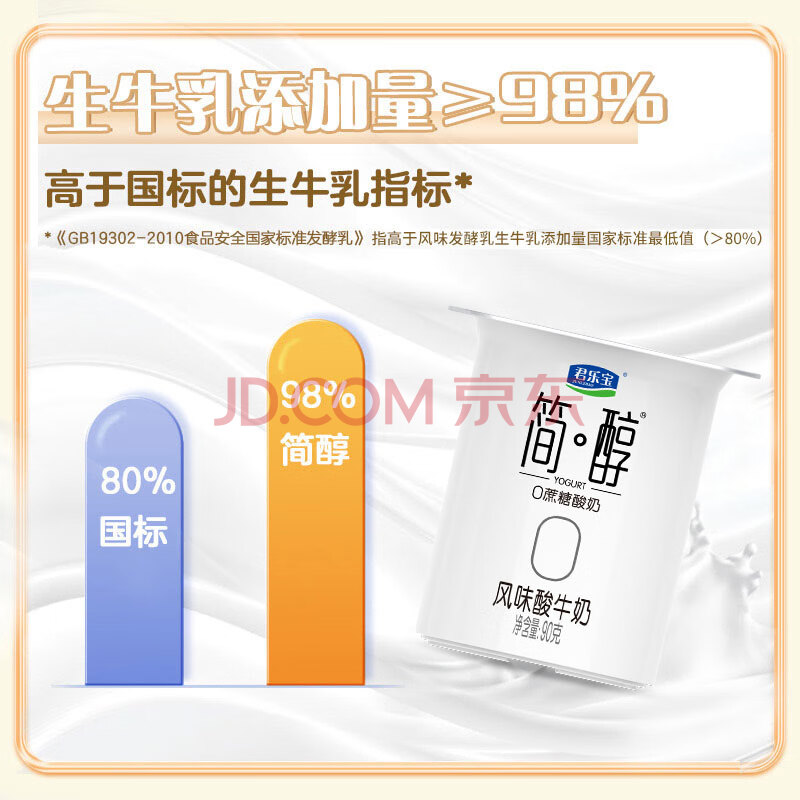 君乐宝简醇 0蔗糖 90g *8联杯装 低温酸奶酸牛奶 生鲜 健康轻食