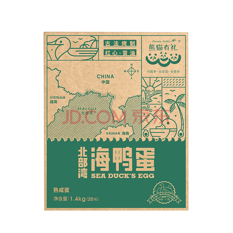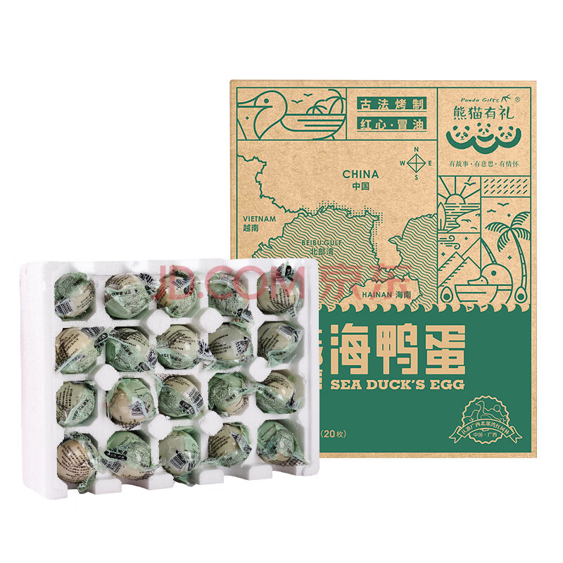 商品名称:熊猫有礼咸鸭蛋北部湾海鸭蛋70g*20枚家庭装送礼即食红心爆油咸淡适中