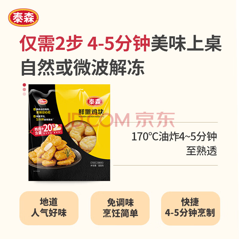 商品名称:泰森(Tyson)鲜嫩鸡块 1斤 冷冻品 原味炸鸡黄金鸡块空气炸锅速食油炸半成品