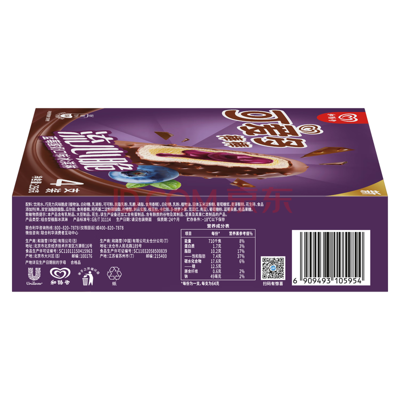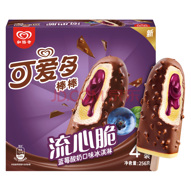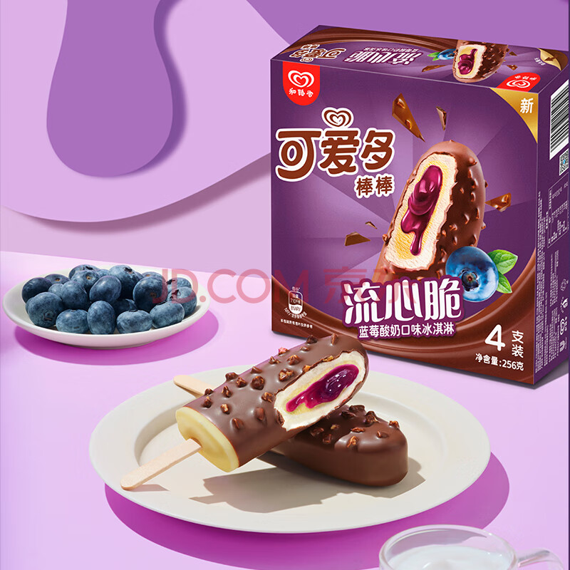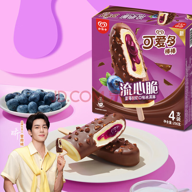 商品名称:可爱多【曾舜晞推荐】可爱多棒棒流心脆蓝莓酸奶口味冰淇淋64g*4支