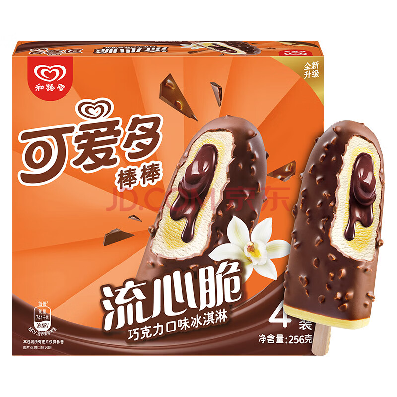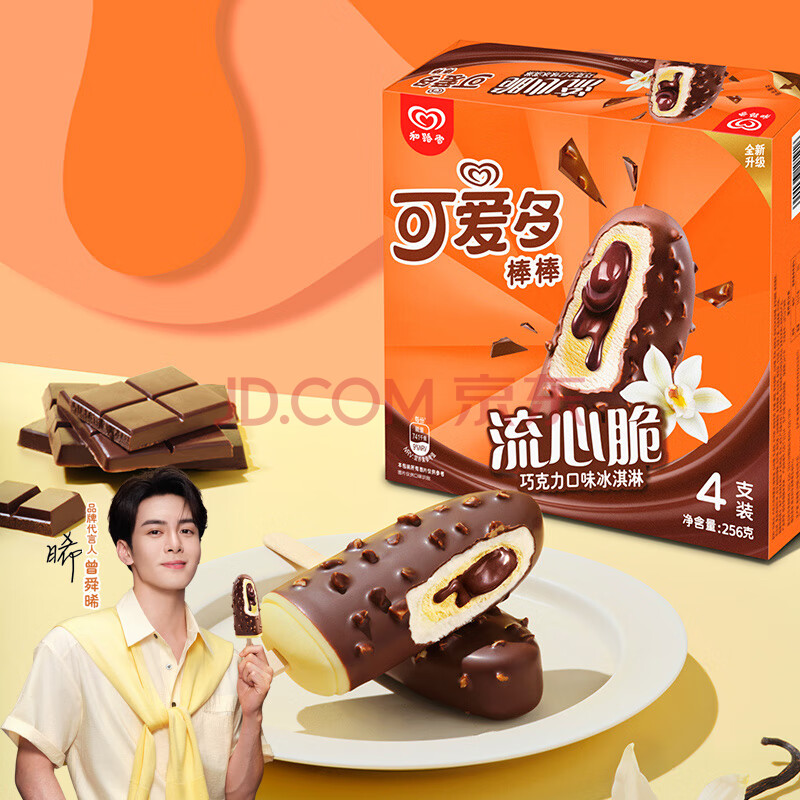 商品名称:可爱多【曾舜晞推荐】】棒棒流心脆巧克力口味冰淇淋 4支*64g 冰淇淋