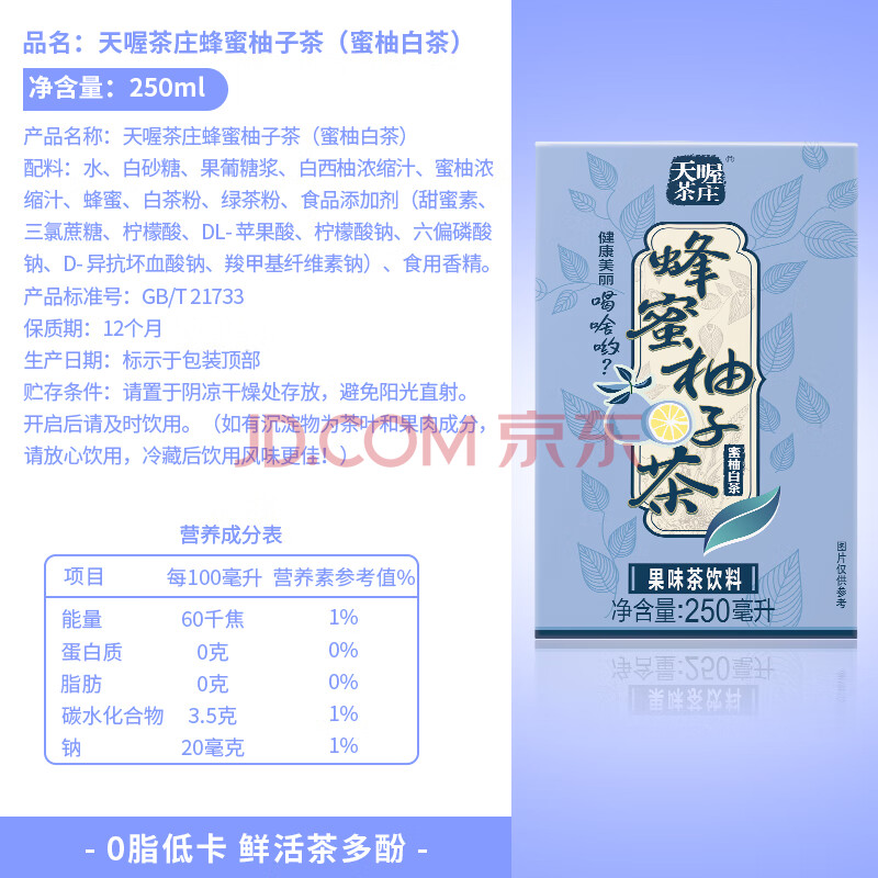 商品名称:天喔 蜂蜜柚子茶蜜柚白茶250ml*16整箱装年货礼盒果味饮品凉茶饮料