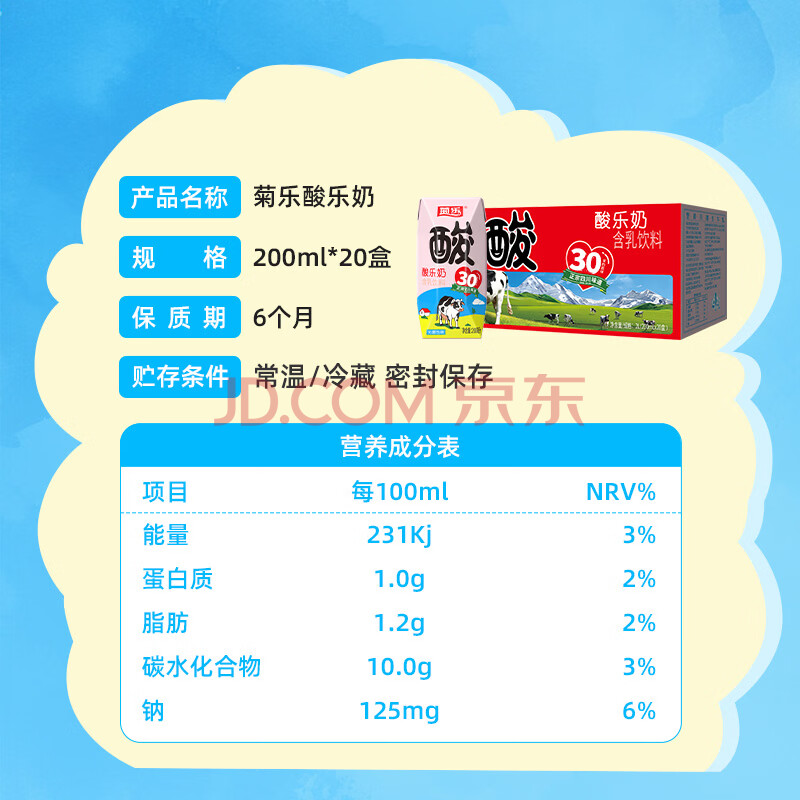 商品名称:菊乐(JULE)酸乐奶牛奶含乳饮料四川老字号礼盒原味200ml*20盒年货送礼盒装