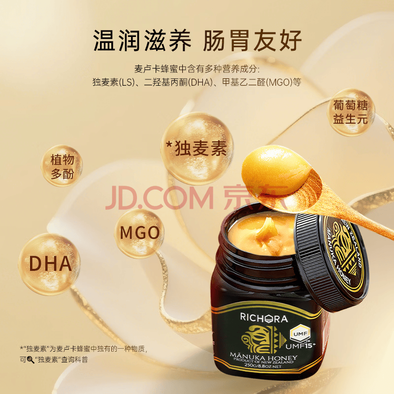 商品名称:瑞琪奥兰(RICHORA)新西兰麦卢卡蜂蜜UMF15+250g 纯正天然滋补品 送长辈父母节日礼物