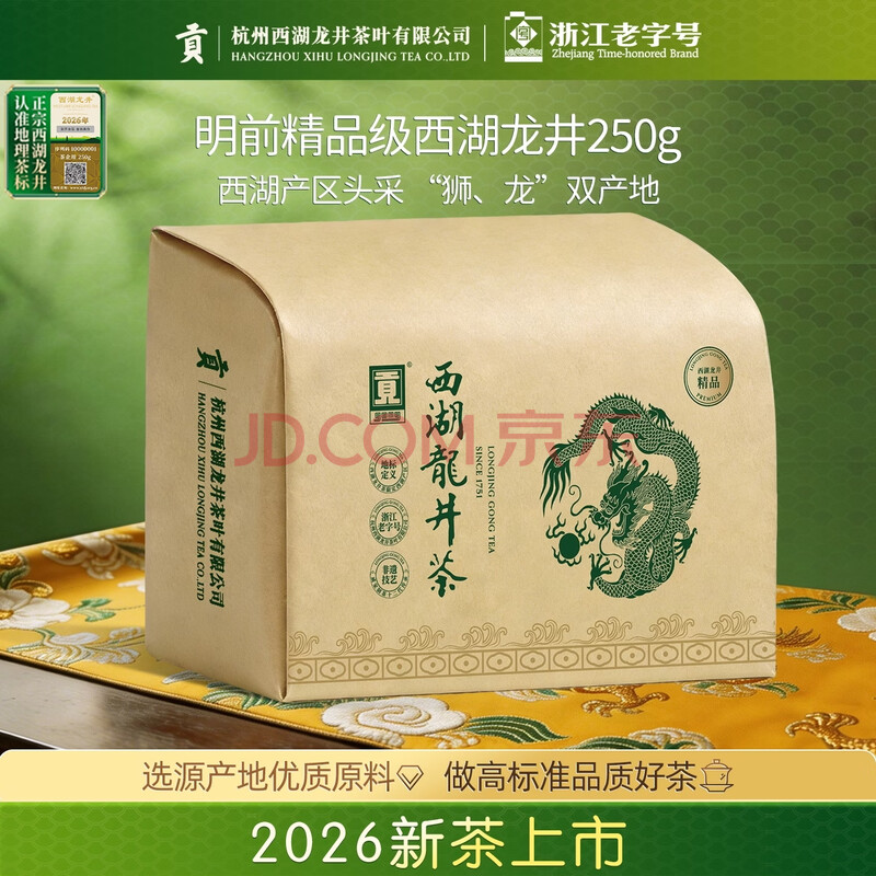 商品名称:贡牌2026新茶上市 绿茶经典西湖龙井茶精品级250g明前纸包