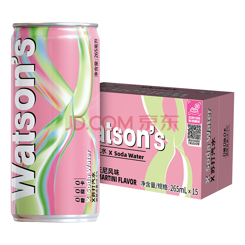 商品名称:屈臣氏(Watsons)X苏打荔枝马天尼苏打水0糖0卡0脂0.5%酒精微醺饮料265mL*15罐整箱