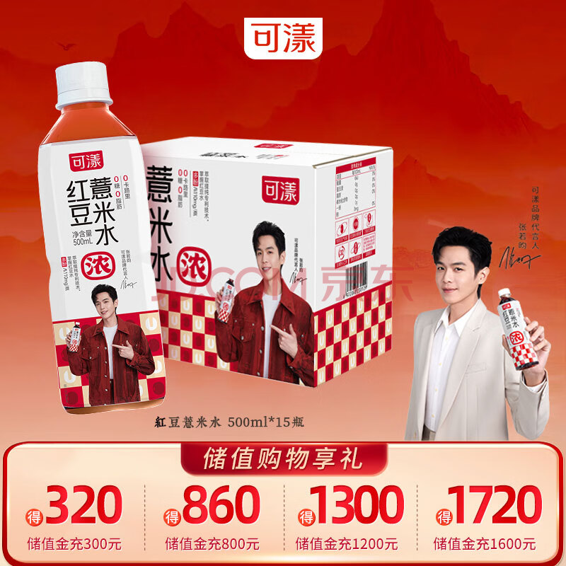 商品名称:可漾 红豆薏米水 0卡无脂肪 运动薏仁无糖饮料500ml*15瓶 整箱
