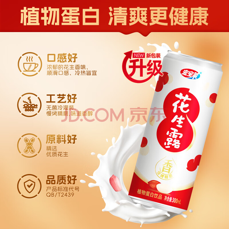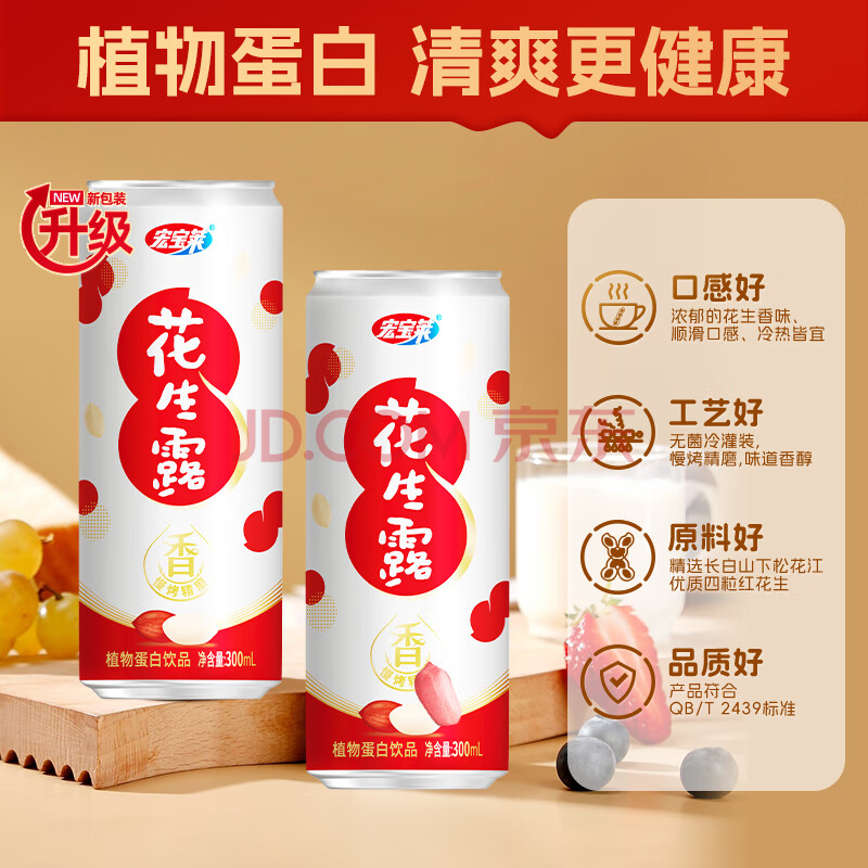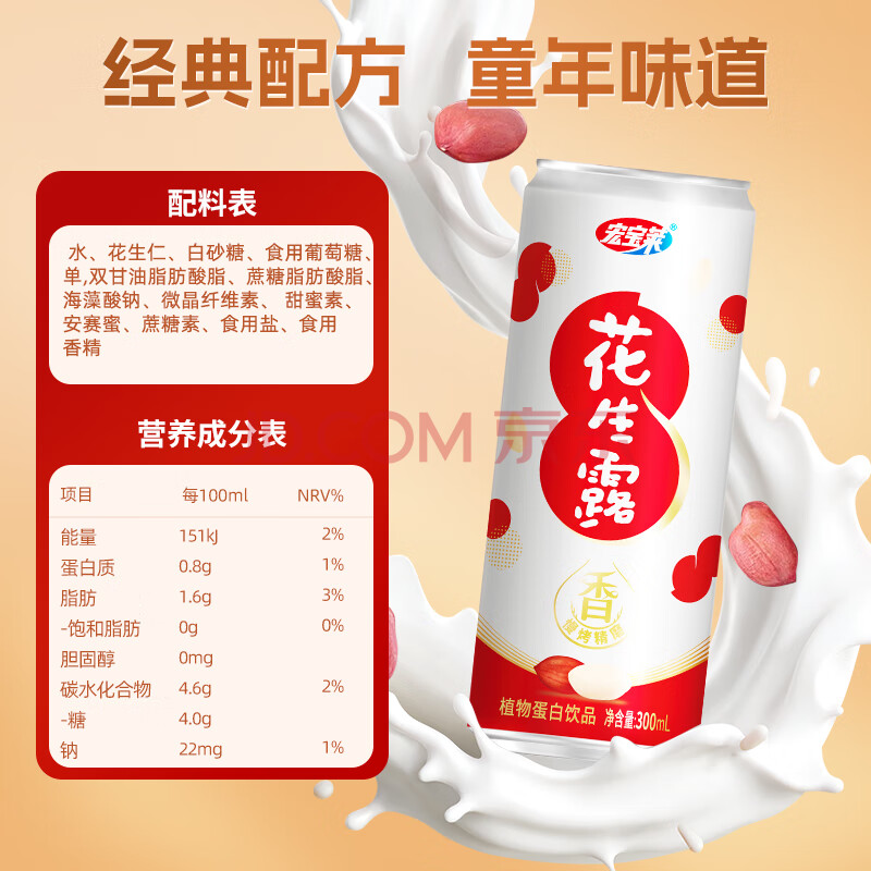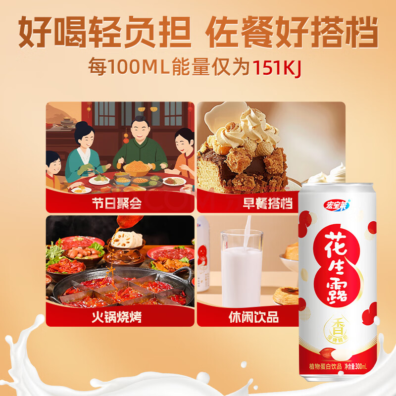 商品名称:宏宝莱花生露300ml*24罐营养蛋白饮料整箱早餐8090后怀旧花生奶整箱装