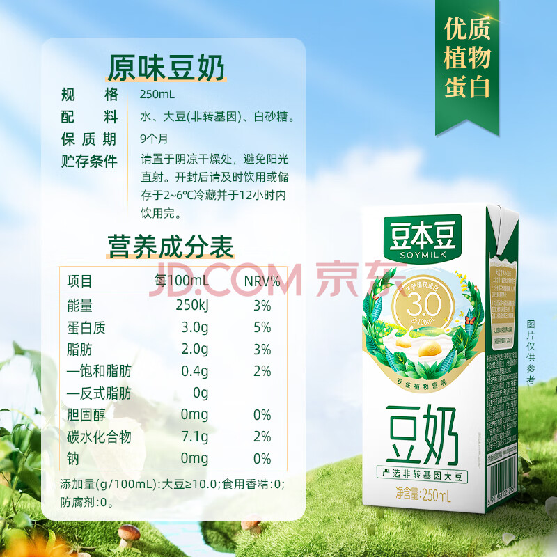 商品名称:豆本豆原味豆奶 250ml*20盒/箱3.0g植物蛋白饮料儿童营养学生早餐奶礼盒