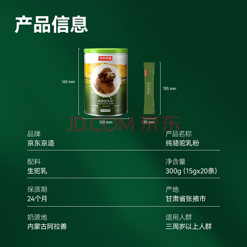 商品名称:京东京造 鲜来多纯骆驼乳粉300g 100%生驼乳奶粉中老年年货送礼补品